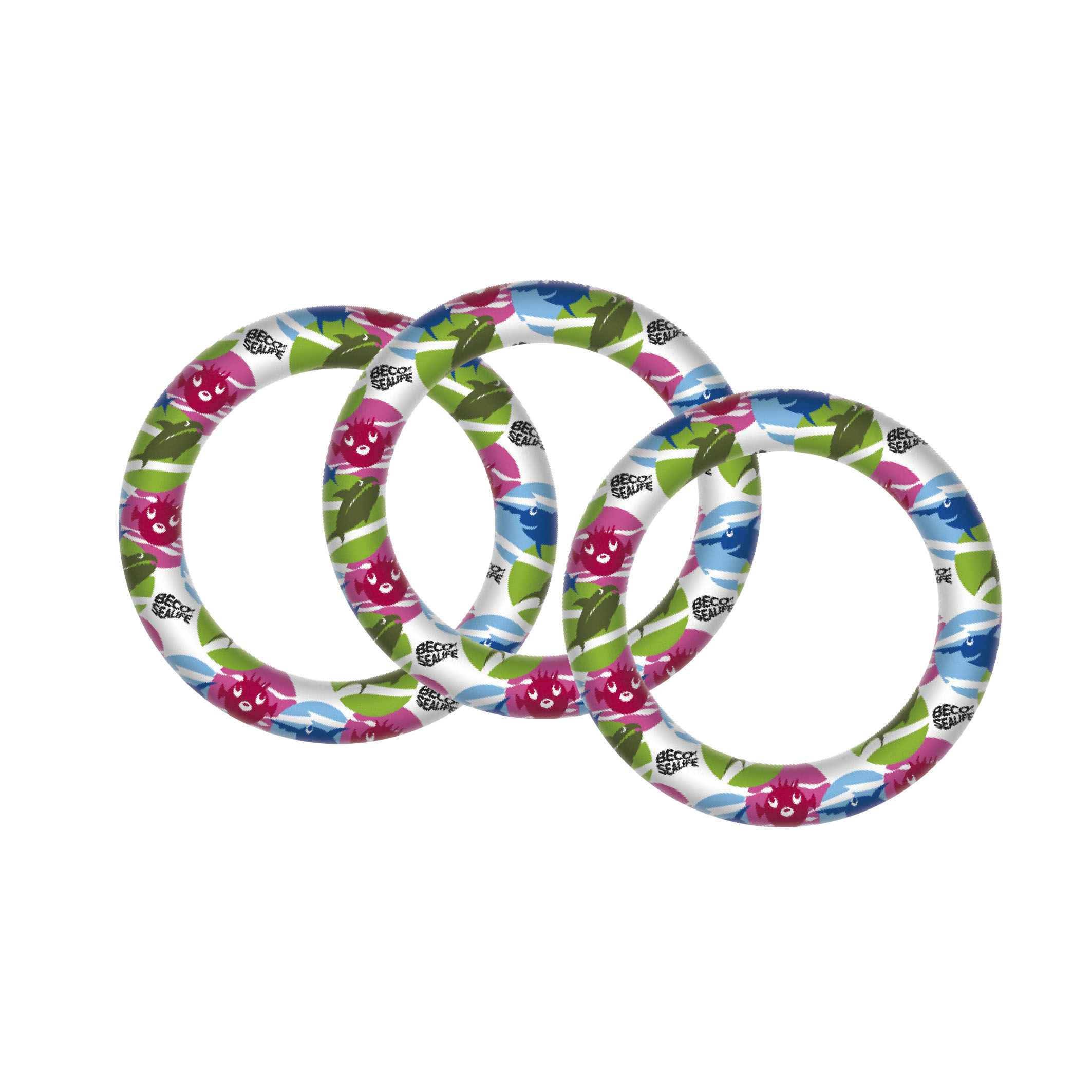 3 farbenfrohe Tauchringe mit Neoprenüberzug aus der Serie Sealife.